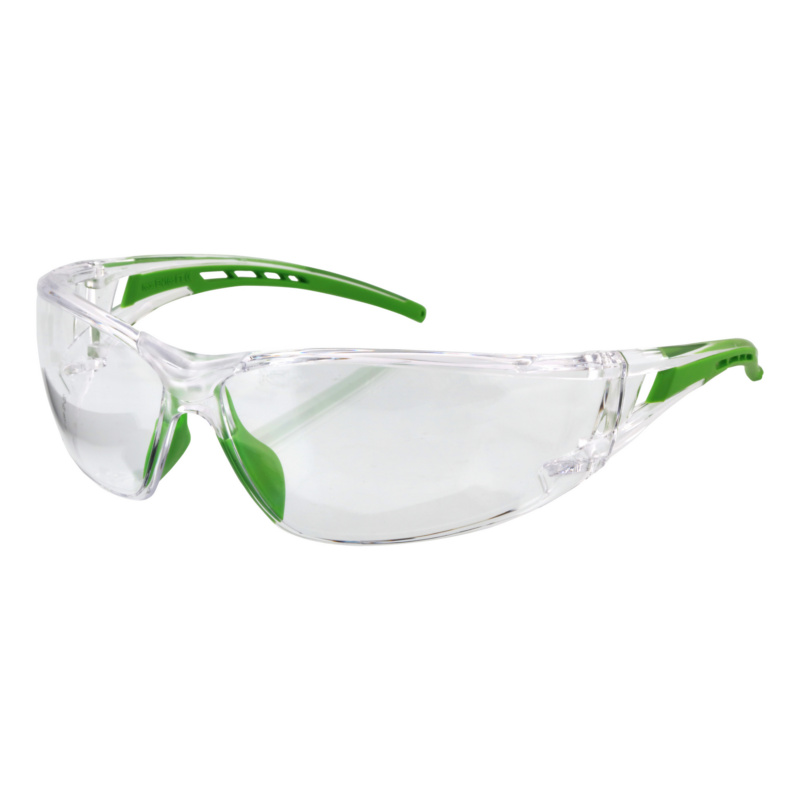 Sportiško dizaino apsauginiai akiniai. Akiniai patogiai priglunda dėl dviejų komponentų rėmo ir minkštos nosies pagalvėlės. Nerūkontys ir tvirti polikarbonato lęšiai. Objektyvo žymėjimas: