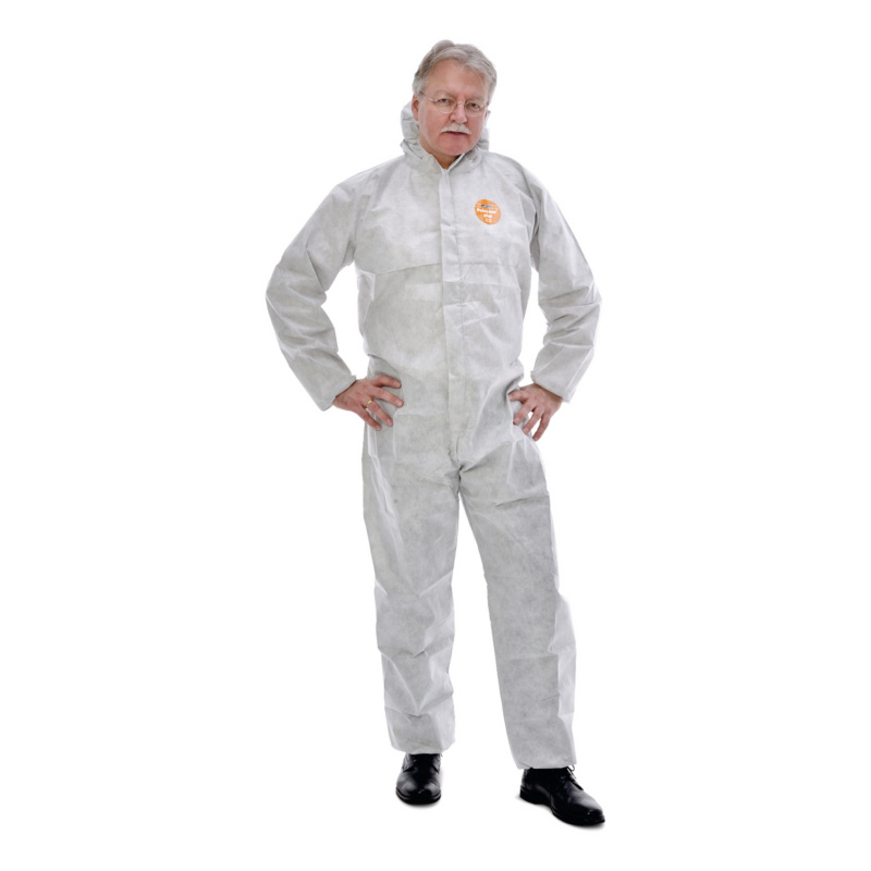 Nepralaidūs dalelėms ir ribotos purslų savybės, 5+6 tipo chemijos apsauginiai drabužiai Kvėpuojantis paint-tex® plus vienkartinis kombinezonas užtikrina patikimą apsaugą nuo smulkių dulkių ir skystų cheminių medžiagų purslų. Medžiaga gaminama naujovišku būdu. Tarp dviejų polipropileno sluoksnių yra lydalo pūtimo būdu pagaminta, oro ir vandens garams pralaidi filtro membrana, kuri, nepaisant garantuoto kombinezono dulkes sulaikančio efekto, įgalina stulbinamą kvėpavimą (SMS). Dėl pralaidumo orui kombinezoną labai patogu dėvėti.Savybės