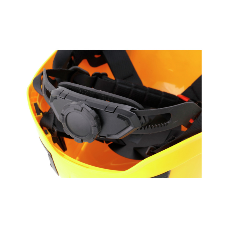 Modernus, lengvas darbo saugos šalmas pagal EN 397:2012 – puikiai tinka kaip kietoji kepurė apsaugai ir darbui aukštyje statybvietėje dėl sumažintos smailės.