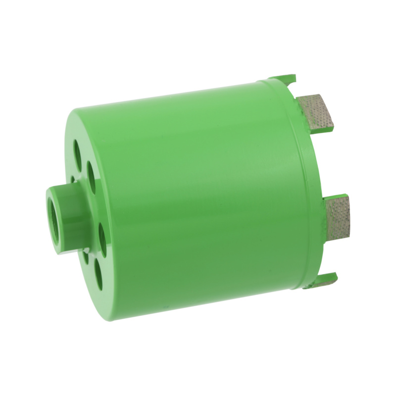 • Speciali deimantų geometrija: įstrižiniai deimantai gręžia medžiagą tiksliai greta ankstesnio deimanto pjovimo vietos, todėl pasiekiamas aukščiausias efektyvumo lygis ir didžiausias pjovimo efektyvumas• Aukštos kokybės kobalto jungtis užtikrina ilgą tarnavimo laiką• Patogus naudoti dėl varpelio formos laiptuotas vamzdinis korpusas: vos 4 mm už segmentų, vamzdžio korpuso skersmuo sumažėja iki 1 mm. Tai sumažina trintį ant gręžimo skylės sienelės ir generuoja žymiai mažiau šilumos (šilumos generavimas gali sugadinti deimantinius įrankius). Be to, tai žymiai sumažina įrankio polinkį įstrigti ar pakrypti.