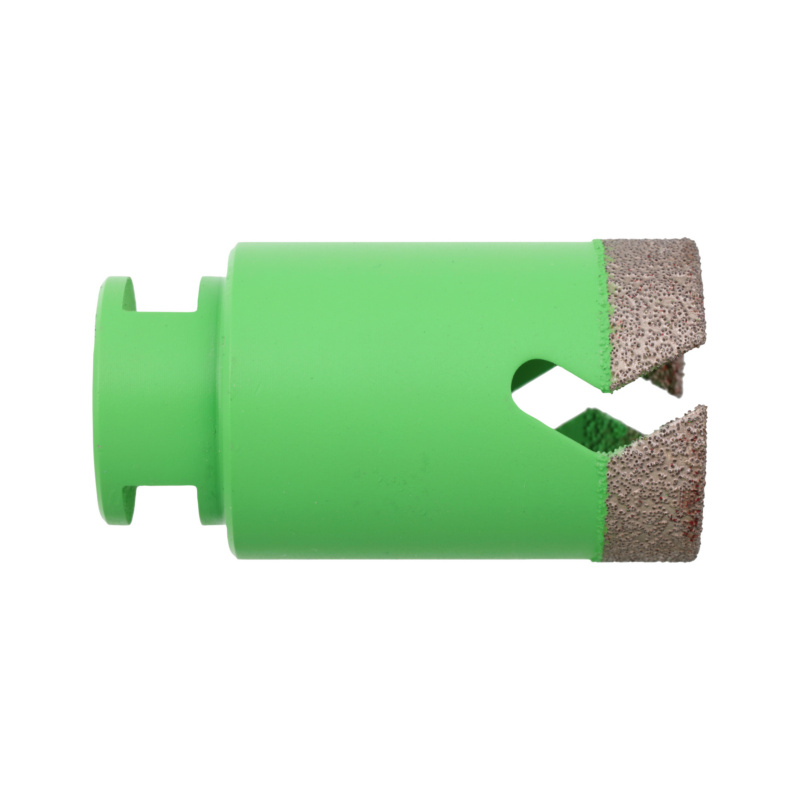 Kietų plytelių, smulkių keramikos, plono granito ir keramikos kiaurymių gręžimui. Geriausi rezultatai naudojant kietas medžiagas. Didelis periferinis greitis naudojant kampinį šlifuoklį leidžia gręžti be vandens aušinimo.