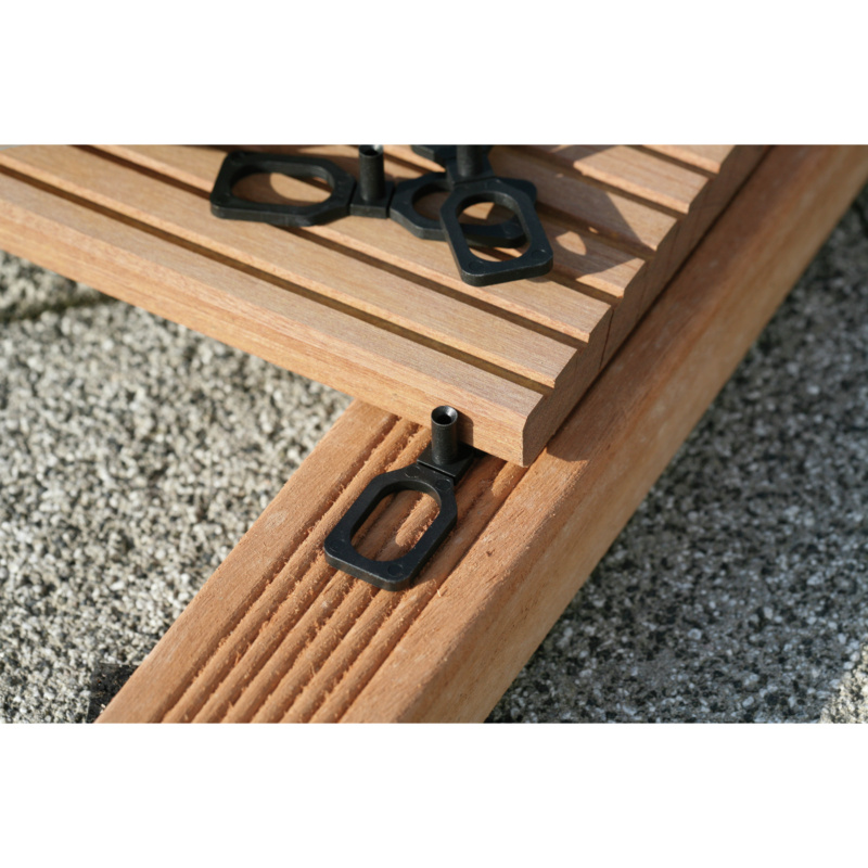 RECA TT tarpikliai leidžia lengvai ir tiksliai kloti terasines lentas. Varžtas nustato lentų atstumą viena nuo kitos. Nereikia jokio papildomo tarpiklio. Dėl terasos lentų vėdinimo terasa tarnauja žymiai ilgiau. Sąnaudos: Apytiksl. 21 vnt./m²