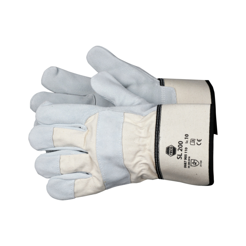 Tvirta apsauginė pirštinė, pagaminta iš aukštos kokybės karvės odos Gumuotas rankogalis ir plaštakos nugarėlė iš aukštos kokybės medvilninio audinio. Rankų nugarėlė saugumui su elastine guma.Sankčių apsaugai, pirštų galiukai ir rodomieji pirštai pagaminti iš skeltos karvės odos. Medvilninis pamušalas delne .EN 388:2016 — našumo lygis 3113X