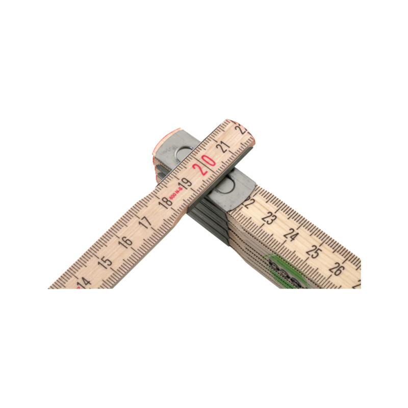 Natūralios spalvos liniuotė, pagaminta iš aukštos kokybės, specialiai parinktos buko medienos su plonomis medinėmis juostelėmis (2,5 mm storio), užtikrinanti didelį lankstumą. Didelio stiprumo šarnyrinės plokštės ir grūdinto plieno spyruoklės užtikrina ilgaamžiškumą, lengvą judėjimą ir saugų sukibimą ištiesus. Patvari, oro sąlygoms atspari skaidri danga apsaugo medieną nuo drėgmės, saulės spindulių ir mechaninio trinties. Dvipusė cm/mm skalė abiejuose kraštuose.II tikslumo klasė