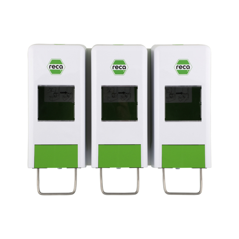 Labai klampių rankų valiklių su abrazyvinėmis medžiagomis dozavimui, skystiems muilams ir losjonams. Tinka RECA odos apsaugos produktų asortimentui, pavyzdžiui: