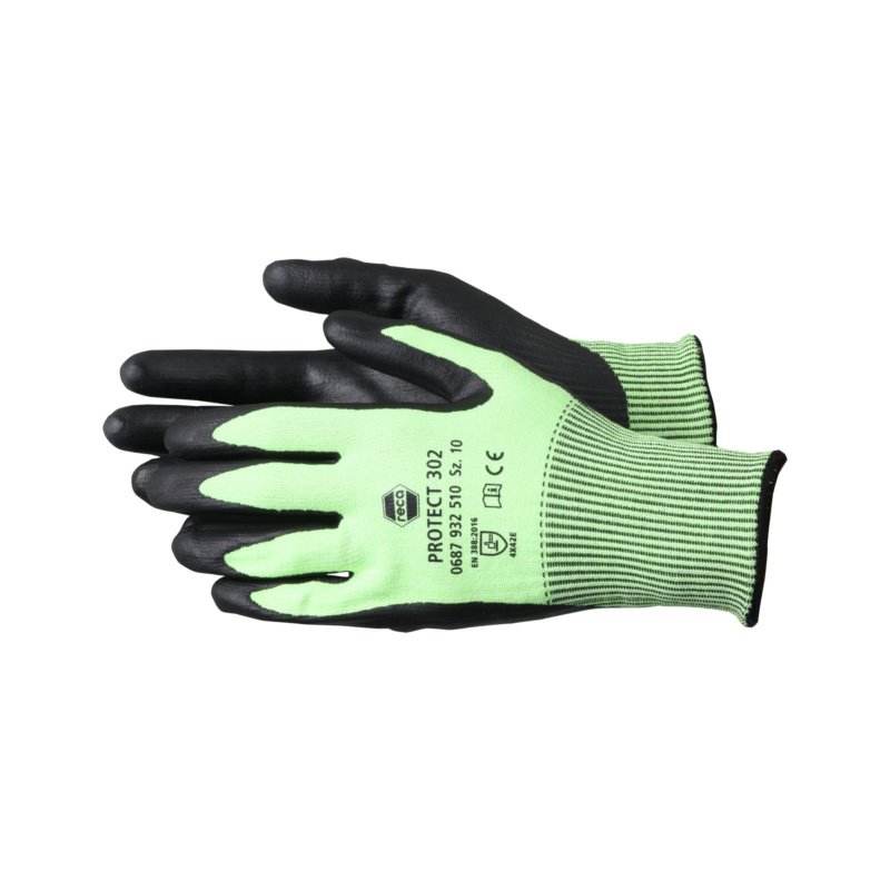 Labai aukštos kokybės pirštinės, apsaugančios nuo pjūvio, pagamintos iš specialių siūlų, užtikrinančios maksimalų patogumą ir lankstumą. Speciali juodo nitrilo putplasčio danga su SOFT-GRIP technologija. Spalvos identifikavimas saugumo sumetimais. Atsparus pjovimui ir alyvai, kad būtų galima optimaliai apsaugoti rankas nuo pjovimo rizikos ir alyvos EN 388:2016 – našumo lygis 4X42E