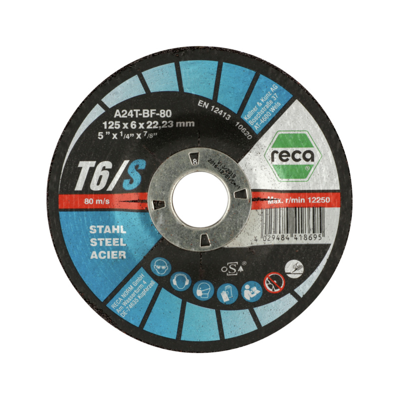 Vidutinio kietumo Turbo grubaus šlifavimo diskas su dideliu pašalinimo greičiu, skirtas sunkiausioms eksploatavimo sąlygoms ir didelis briaunų stiprumas. Pakopinis dizainas su Turbo profiliu. Atitinka griežčiausius oSa saugos reikalavimus. Sertifikuota kokybė.