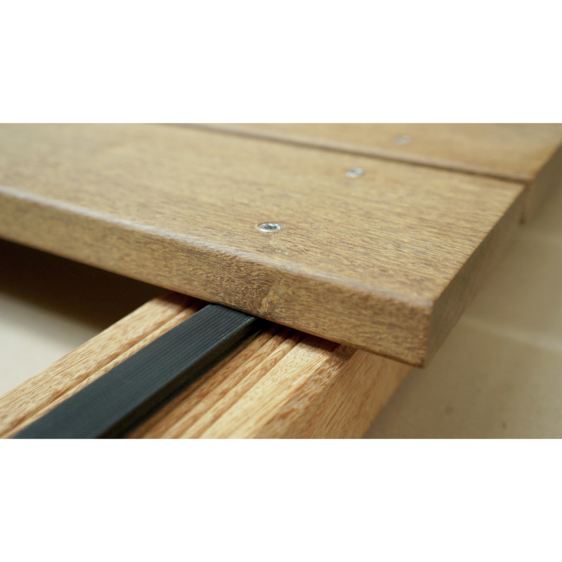 Įterpiamas atstumo profilis, pvz. terasos konstrukcijoje tarp pagrindo ir dangos paviršiaus ir užspaudžiamas arba įsukamas tiesioginio montavimo būdu [sraigtinis sujungimas].